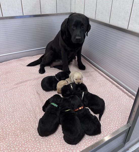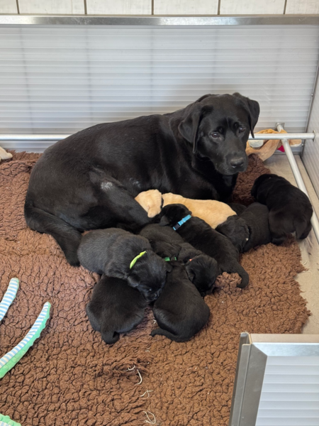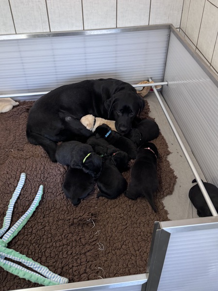 Hündin Wandori (schwarz) Wurffarbe Schwarz und Gelb (geb. 28.02.26)